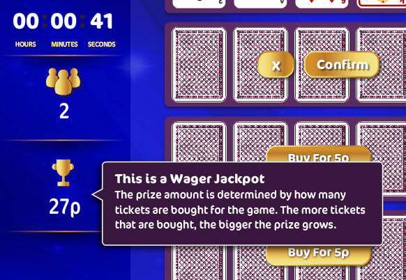 Additional game information is available on the game info panel on the left, including the number of players who have entered the game (purchased at least one ticket), the available jackpots and how to win them and a "how to play" button with a tutorial on how to operate the game.